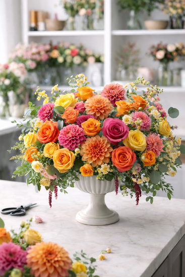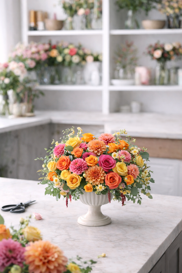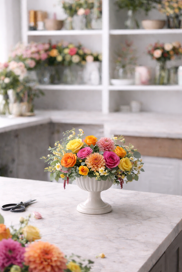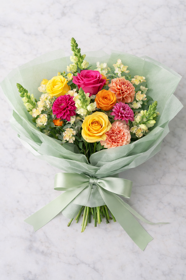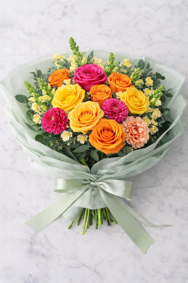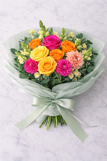 The Bright Arrangement is designed for the person who brings light wherever they go. Expressive blooms and layered greenery come together in a composition that feels joyful, confident, and full of warmth—an arrangement that instantly lifts any space.