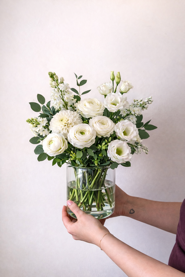 Each arrangement is artfully composed in our studio using the freshest seasonal blooms. While natural variations may occur, every piece is created with care and delivered exactly as intended—fresh and effortlessly beautiful.